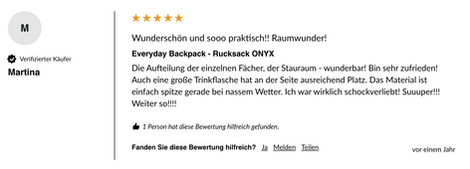 Mit 4,77 Sternen bestätigen die Käuferinnen: Dieser Rucksack hält, was er verspricht. Und das bei einem Preis von nur 69,99€ – weniger als die Hälfte dessen, was vergleichbare Premium-Marken verlangen.